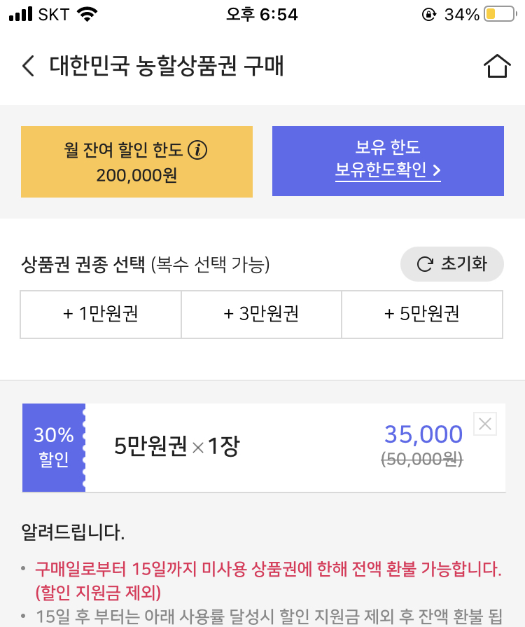 제로 페이 어플에서 농활쿠폰을 30% 할인된 금액으로 구매 후