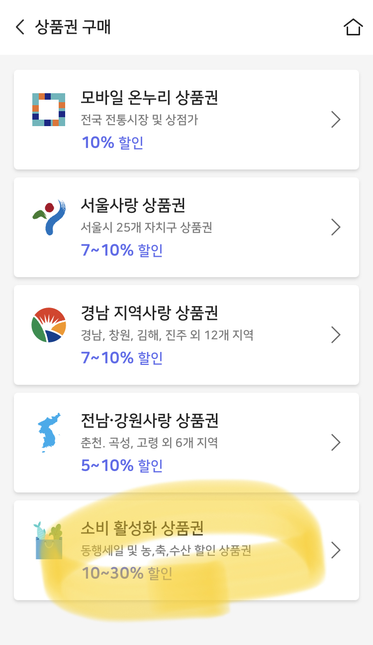 "소비 활성화 상품권" 클릭!