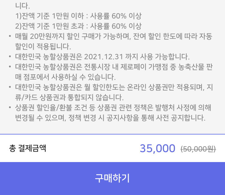 리스트에서 대한민국 농활 상품권 "구매"를 클릭하면 된다.