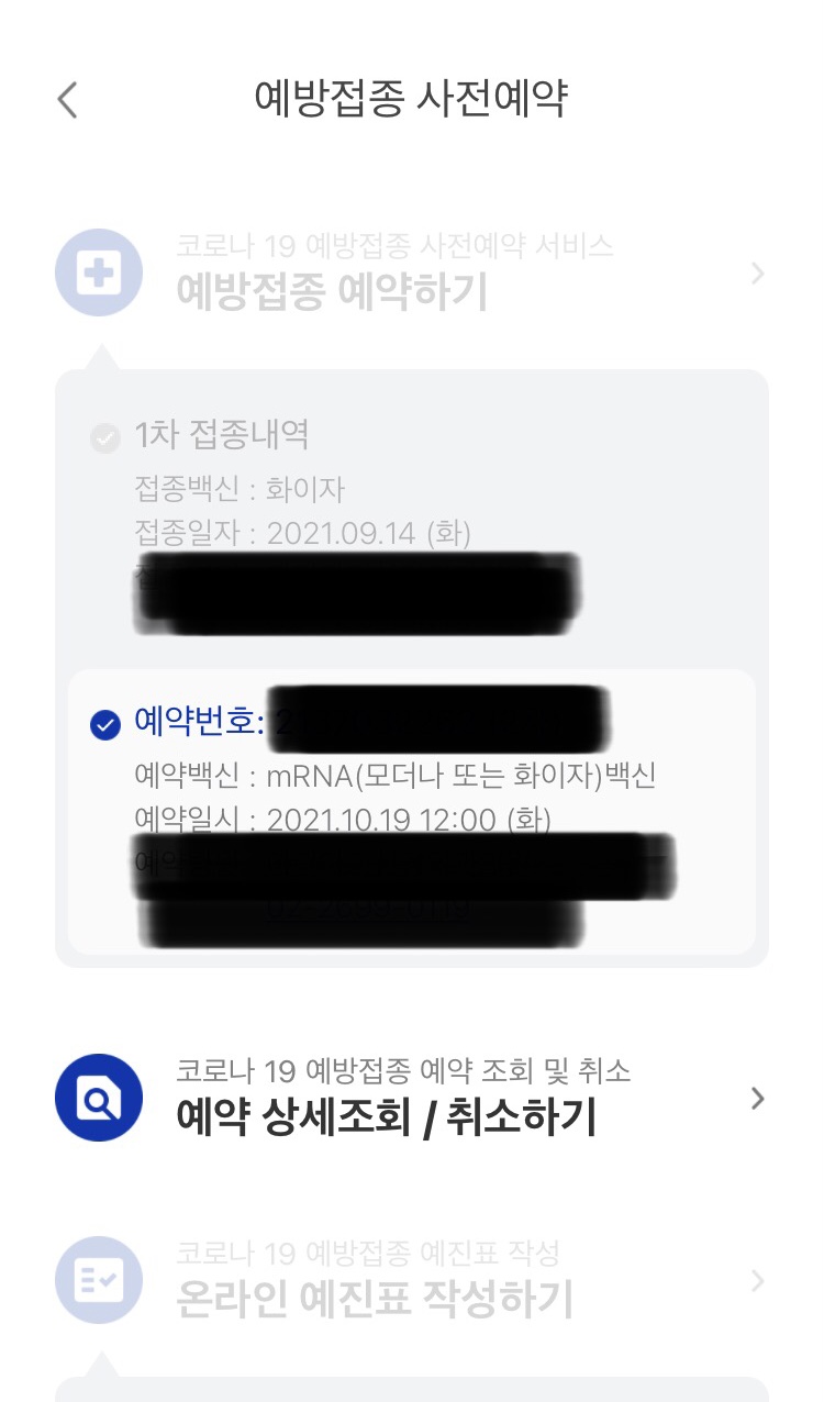 혹시 백신 예약 조정을 원할 경우