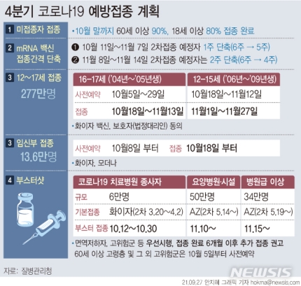어제 2시에 코로나 백신 화이자, 모더나 접종 시기를