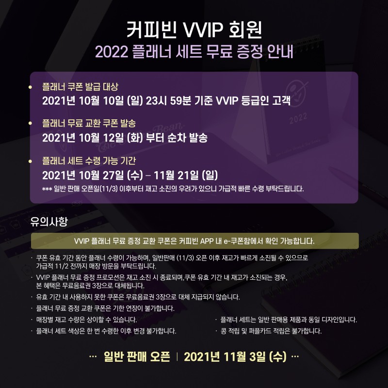 기존 VVIP 가준으로 2022 다이어리 세트가 제공된다
