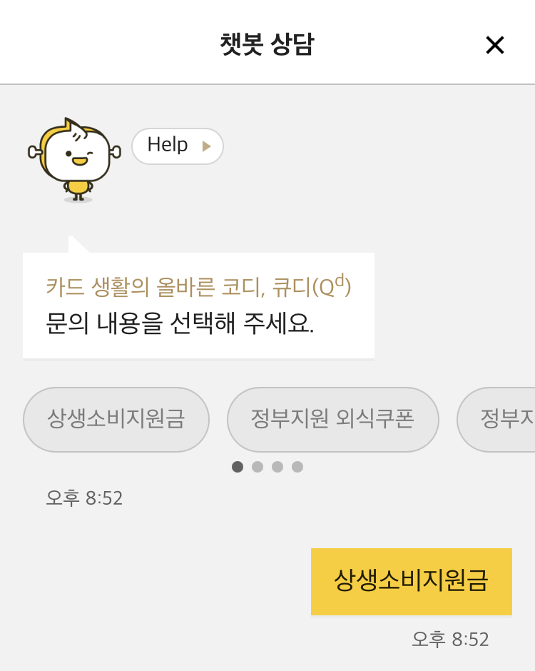 챗봇상담을 키면 여러 상담 아이콘이 나온다.