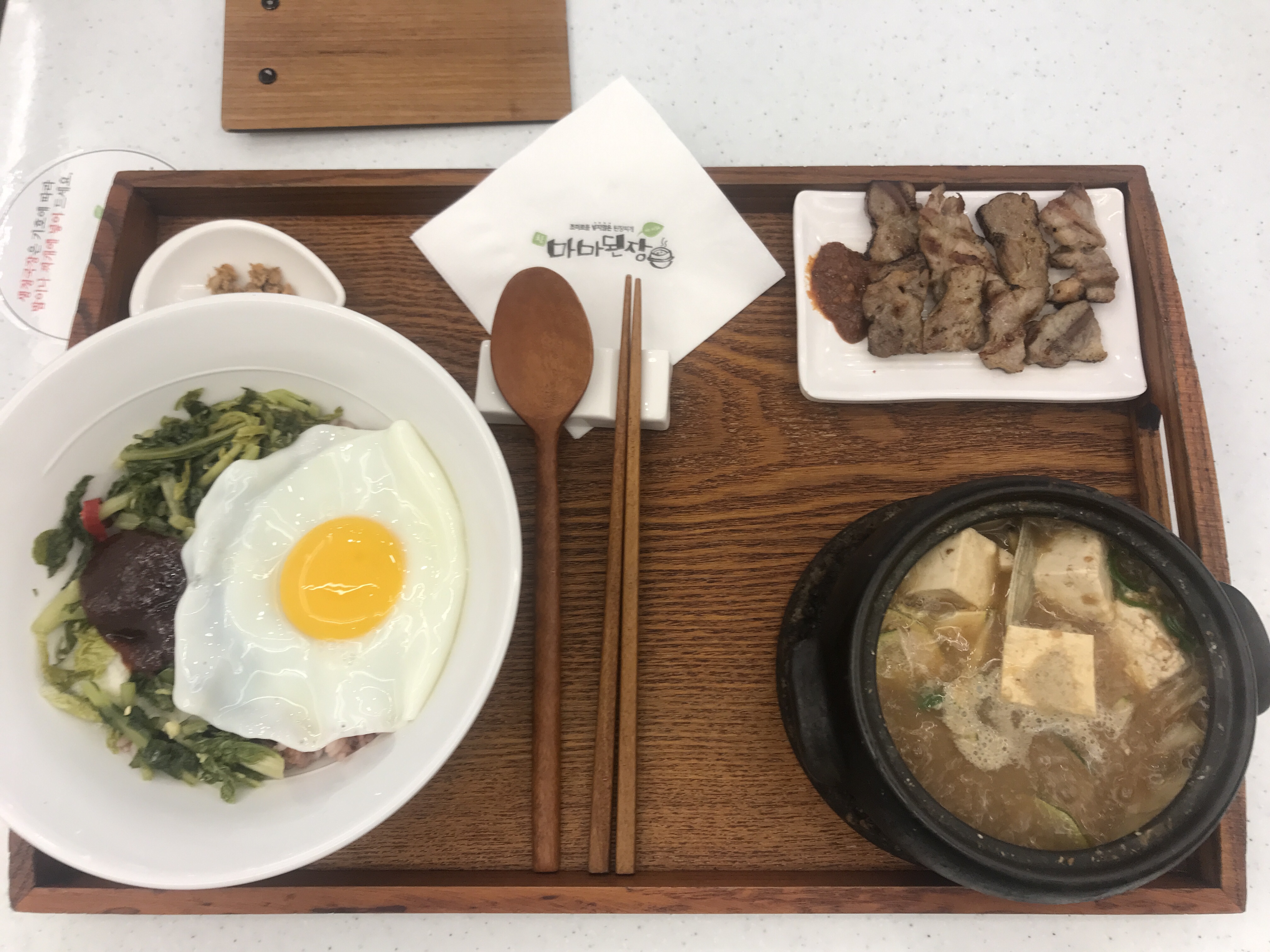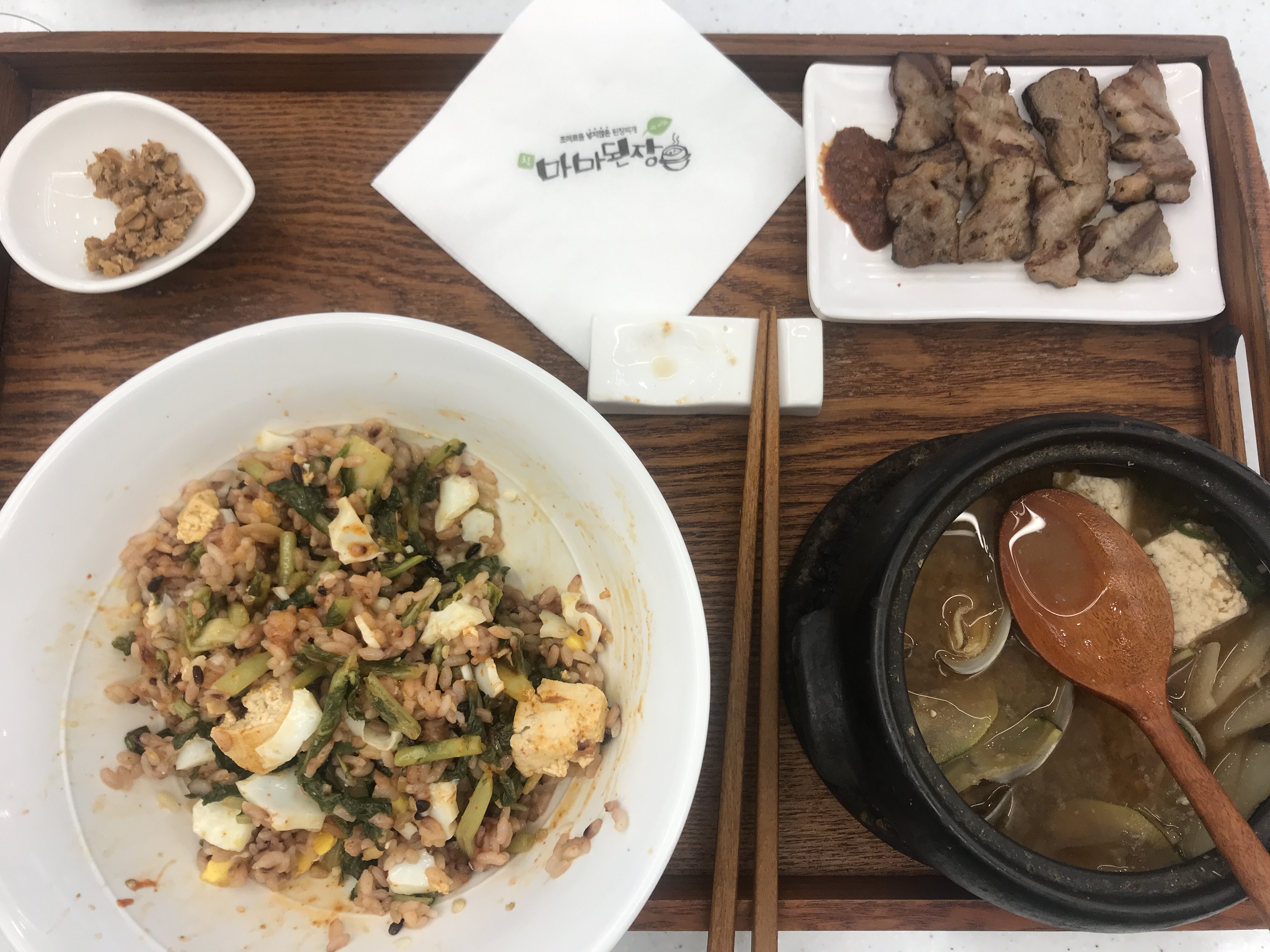 왼쪽 상단의 청국장은 기호에 맞게 비벼 먹으라고 하셨다.