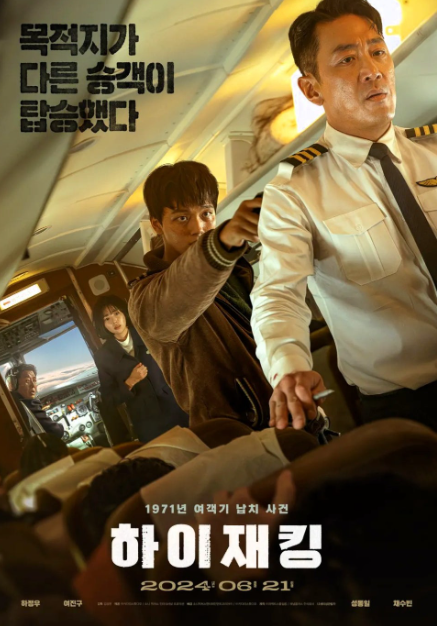 이 영화는 1971년에 실제로 있었던 대한항공 F27기 납북 미수 사건을 영화로 만든 작품입니다. 1971년 이전에 1969년 12월에 대한항공 YS-11기 납북 사건이 발생합니다. 태인(하정우)과 동철(김동욱)은 전투기를 타고 출격합니다. 북한 공작원 조창희는 대한 항공 여객기를 북한으로 납치하려고 합니다. 여객기가 휴전선을 넘으려는 순간 하정우는 민간 비행기의 한쪽 엔진을 포격하라는 명령을 받습니다. 그럴 경우 민간인까지 죽을 수 있는 상황이기 때문에 하정우는 포격하지 않습니다. 그 비행기는 북한에 착륙하게 되지만 승객과 승무원은 살 수 있었습니다. 태인(하정우)은 명령불복종 죄로 1년 만에 조기 전역을 하게 됩니다. 그리고 대한항공에서 규식(성동일)과 비행을 하게 됩니다. 극 중 빌런으로 나오는 용대(여진구)는 억울하게 누명을 쓰고 감옥에 갑니다. 용대가 어릴 시절 그의 형이 월북을 하고, 동네 순경들은 용대에게 전단을 일부러 숨기고 그를 감옥에 넣습니다. 출소 한 용대는 비행기를 끌고 북한으로 가 영웅 대접을 받을 계획을 세웁니다. 영화의 주 무대는 속초에서 출발해 김포 공항에 도착하는 비행기 안입니다. 규식(성동일)과 태인(하정우)이 비행을 하는 비행기입니다. 용대(여진구)는 폭탄을 준비해 비행기를 탑니다. 지금의 비행기 분위기와는 조금 다른 풍경이 연출되었습니다. 좌석 번호가 없기 때문에 앞자리에 앉고 싶은 승객들이 달려가는 모습이 나옵니다. 그리고 정말 기가 막히지만 닭을 데리고 타는 장면도 있습니다. 깨알 같은 재미가 있었습니다. 용대는 사제 폭탄을 갖고 하이재킹(비행기 납치)을 합니다. 용대는 폭탄을 던진 뒤 조종실을 장악합니다. 그 과정에서 규식(성동일)의 한쪽 눈이 다쳐 보이지 않게 됩니다. 납치된 여객기가 휴전선 근처로 향하자 전투기가 파견됩니다. 그리고 그 전투기는 태인(하정우)의 후배 동철(김동욱)이 조종하고 있습니다. 군대에서는 여객기가 휴전선을 넘어가기 전에 미사일을 발사하여 격추시키라고 합니다. 하지만 태인은 2년 전 동철이 그랬던 것처럼 미사일을 쏘지 못합니다. 상황은 위급해지고 태인(하정우)의 기지로 휴전선을 넘어가지 못하도록 넘어가기 직전에 여객기를 90도로 올립니다. 다행히 비행기는 북한으로 넘어가지 않았습니다. 기내는 아수라장이 되었고 사람들은 넘어져있습니다. 용대는 다시 폭탄을 던지려고 하지만 승무원(채수빈)과 보안관 창배의 활약으로 총에 맞고 쓰러집니다. 용대(여진구)의 폭탄이 다시 터지기도 합니다. 태인과 규식은 바닷가에 불시착 하지만 태인은 이미 죽은 뒤였습니다. 긴장감 넘치는 분위기를 잘 연출했습니다. 그리고 신파가 없다는 점에 높은 점수를 주고 싶습니다. 신파 없이 긴장감과 감동을 주는 영화가 개봉되어 개인적으로 기쁩니다. 뻔한 내용이지 않을까 하는 우려와는 반대로 재밌다는 평이 많습니다. 실제 관람객 평균 평점도 8점 이상으로 높은 점수입니다. 영화관에서 잘 봤다고 느껴진 항공 액션이라는 평가도 있습니다. 또한 여진구 배우님의 악역이 가장 인상적이었습니다. 그는 비주얼뿐만 아니라 믿고 보는 연기력도 있었습니다. 이번 악역으로 그의 연기 스펙트럼이 더욱 넓어진 것을 확인할 수 있었습니다. 앞으로 다양하고 많은 작품으로 연기를 보고 싶습니다.