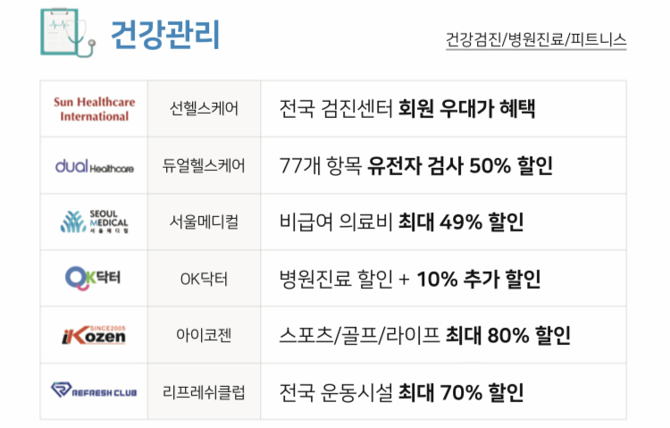애플, 삼성, 야나두,코레일, 밀리의서재, 11번가, 운동시설 등