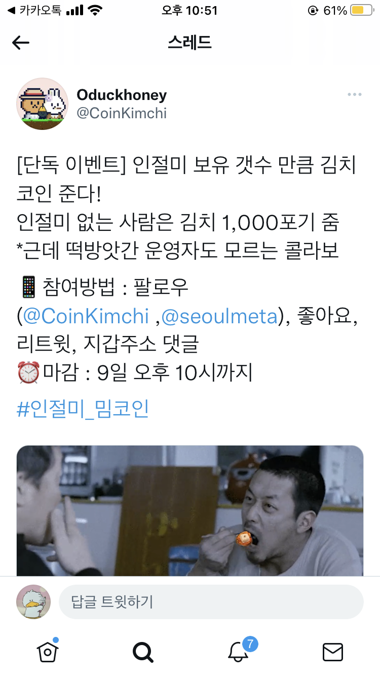 오덕허니님이 인절미 관련하여 ‘김치코인’을