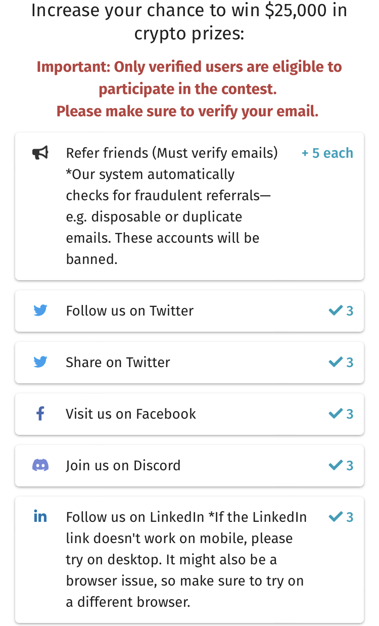 Win up to $25,000 in crypto prizes